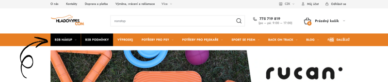 - Nákup: Po schválení se vám v menu zobrazí nové pole "B2B NÁKUP", kde naleznete veškeré produkty k B2B prodeji.